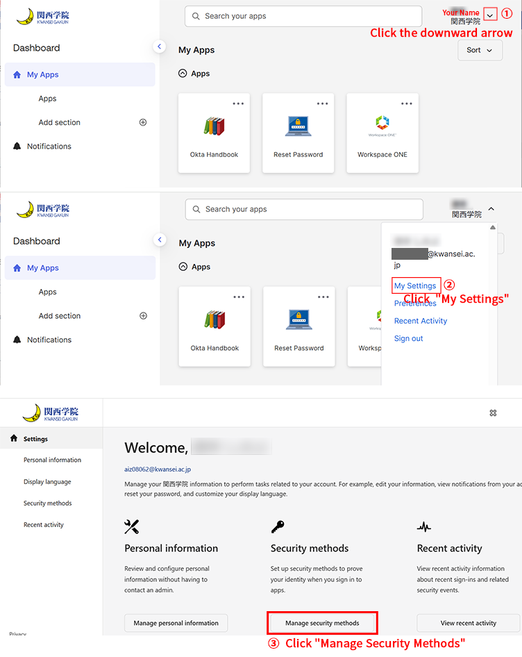 Go to Settings > Security Method.Click the [Update] button next to the password section.