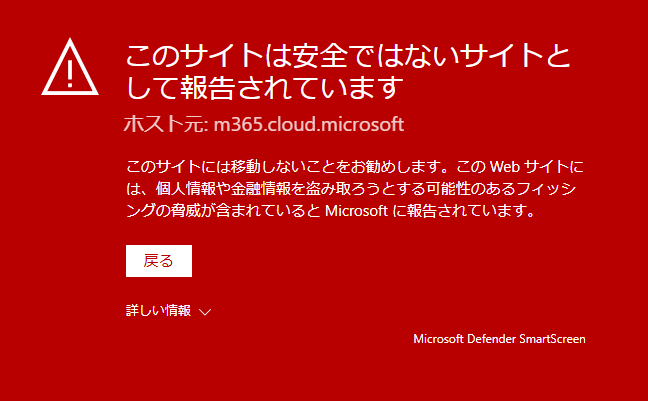 2025年10月28日12:50頃より、EdgeブラウザでCopilot(https://m365.cloud.microsoft/chat/)にアクセスしようとすると、「このサイトは安全ではないサイトとして報告されています」という警告画面が表示され、利用できない事象を確認しています。(画面表記は下記画像をご参照ください。)
